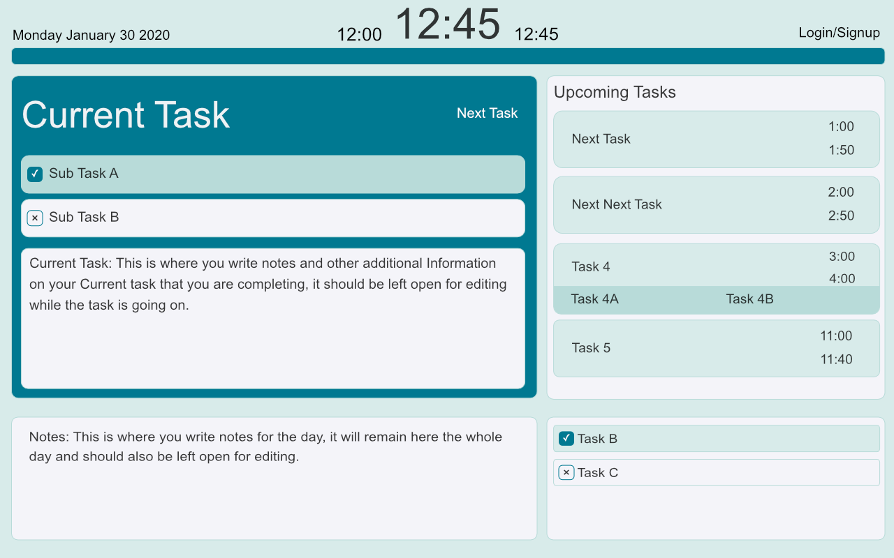 Schedule Daily is an application designed for one thing and one thing only, planning your day in a way thats conducive to following through with it. While it only has one purpose its user base is limitless. Whether you want to maximize your study time or keep up with your work outs, Schedule Daily has the tools you need to stay on track and get stuff done. Simplicity and effectiveness reign supreme here and the only things you need to provide are a plan and some effort. Schedule Daily is currently being built for the web using React.